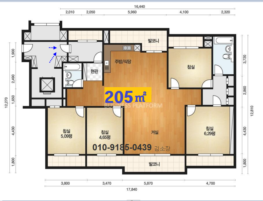 방 4개,드레스룸 1개, 욕실겸한 화장실 2개