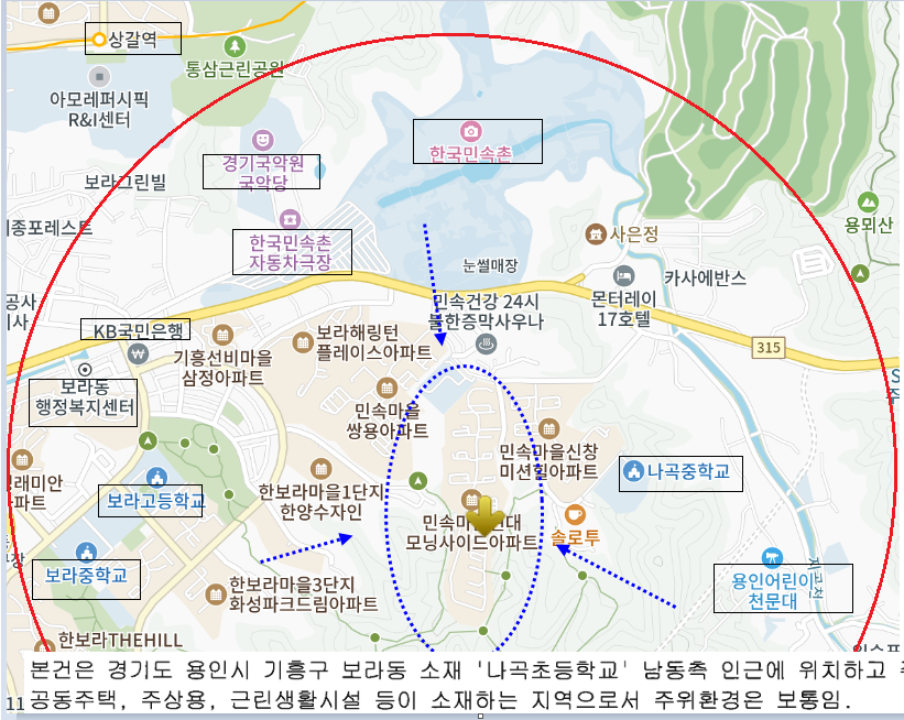 용인 기흥구 한국민속촌 숲세권아파트. 보라동 민속마을 현대모닝사이드 62평형 2차경매(25-50055)311