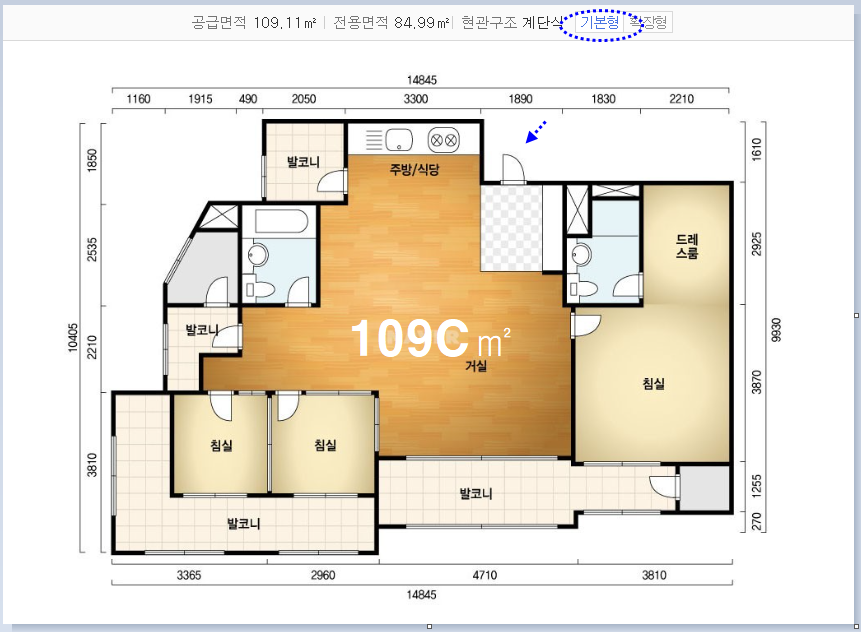 아파트 전용면적은 85㎡ (25.7평) 32평형아파트..